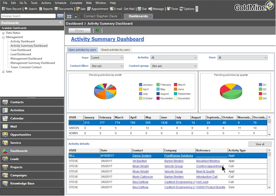 GoldMine Premium Edition is a CRM system that supports all your sales, marketing and customer service business needs through powerful customer relationship management features, including account management, marketing automation, sales team automation, pipeline management, customer service and support administration.